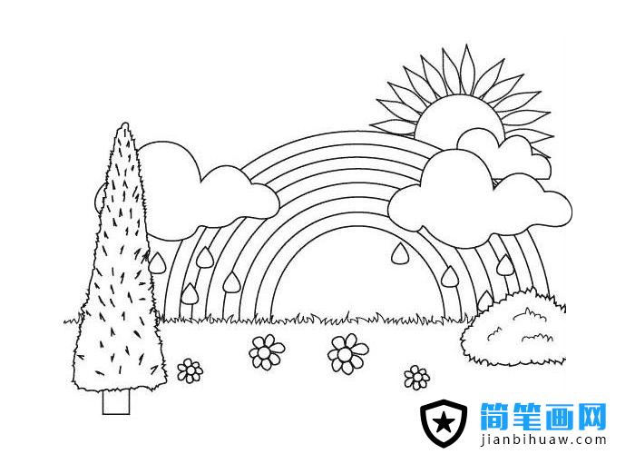 風(fēng)雨之后見彩虹的簡筆畫圖片